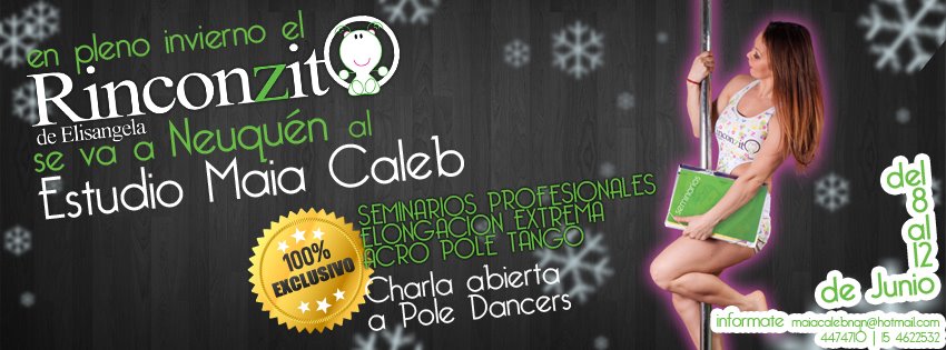 Rinconzito de Elisangela Elisangela Dos Reis en Neuquén\r\n\r\nEstudio de Maia Caleb de POLE DANCE, Provincia de NEUQUEN\r\nSeminarios Profesionales de Elongación Extrema / Acro Pole Tango\r\nCharla abierta a Pole Dancers\r\nPrevención de lesiones\r\n\r\nFecha: del 8 al 12 de Junio 2012\r\n\r\n